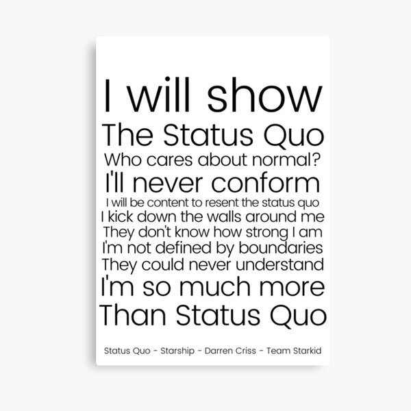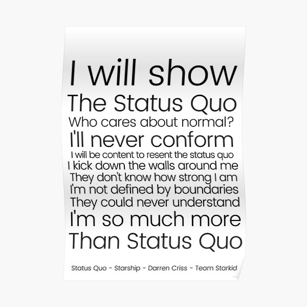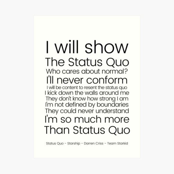 STARKID Status Quo Lyrics. So I say no to status quo Who wants to be like the rest And deny the best that Im meant for I will show the status quo Who.